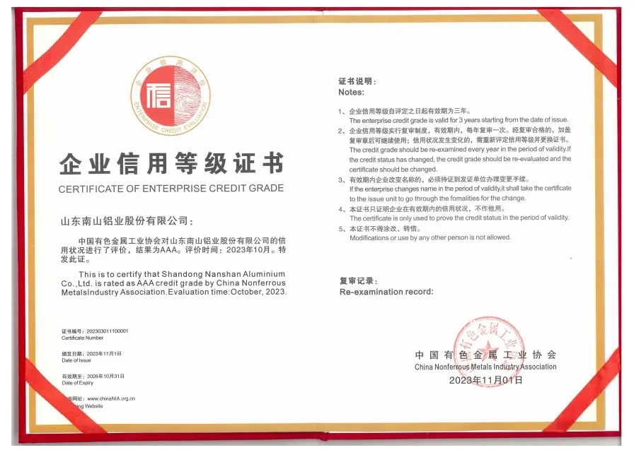 會(huì)上,南山鋁業(yè)被授發(fā)AAA級(jí)企業(yè)等級(jí)信用證書及等級(jí)評(píng)價(jià)牌匾,這不僅是對(duì)公司多年來誠(chéng)信經(jīng)營(yíng)、穩(wěn)健發(fā)展的認(rèn)可,更是對(duì)公司未來發(fā)展的期許和鞭策。