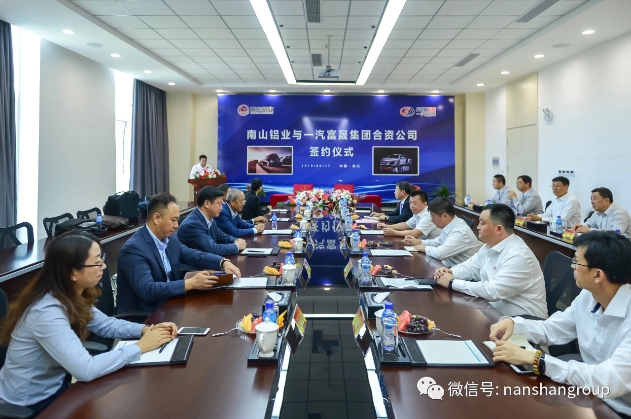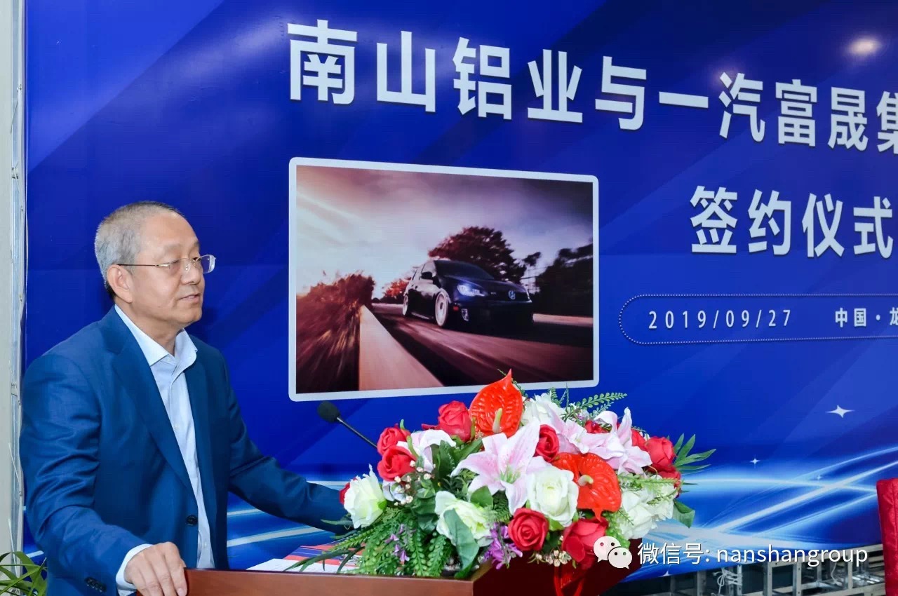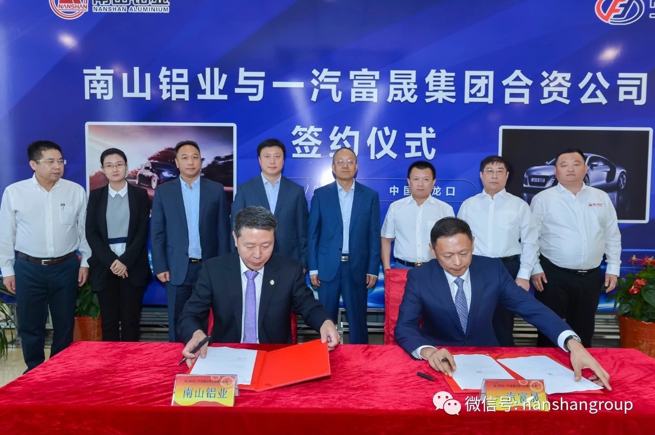 在雙方領(lǐng)導(dǎo)的共同見證下,南山鋁業(yè)總經(jīng)理呂正風(fēng)與一汽富晟集團(tuán)總裁張昕在合資協(xié)議上簽字,標(biāo)志著富晟南山汽車科技有限公司正式成立。