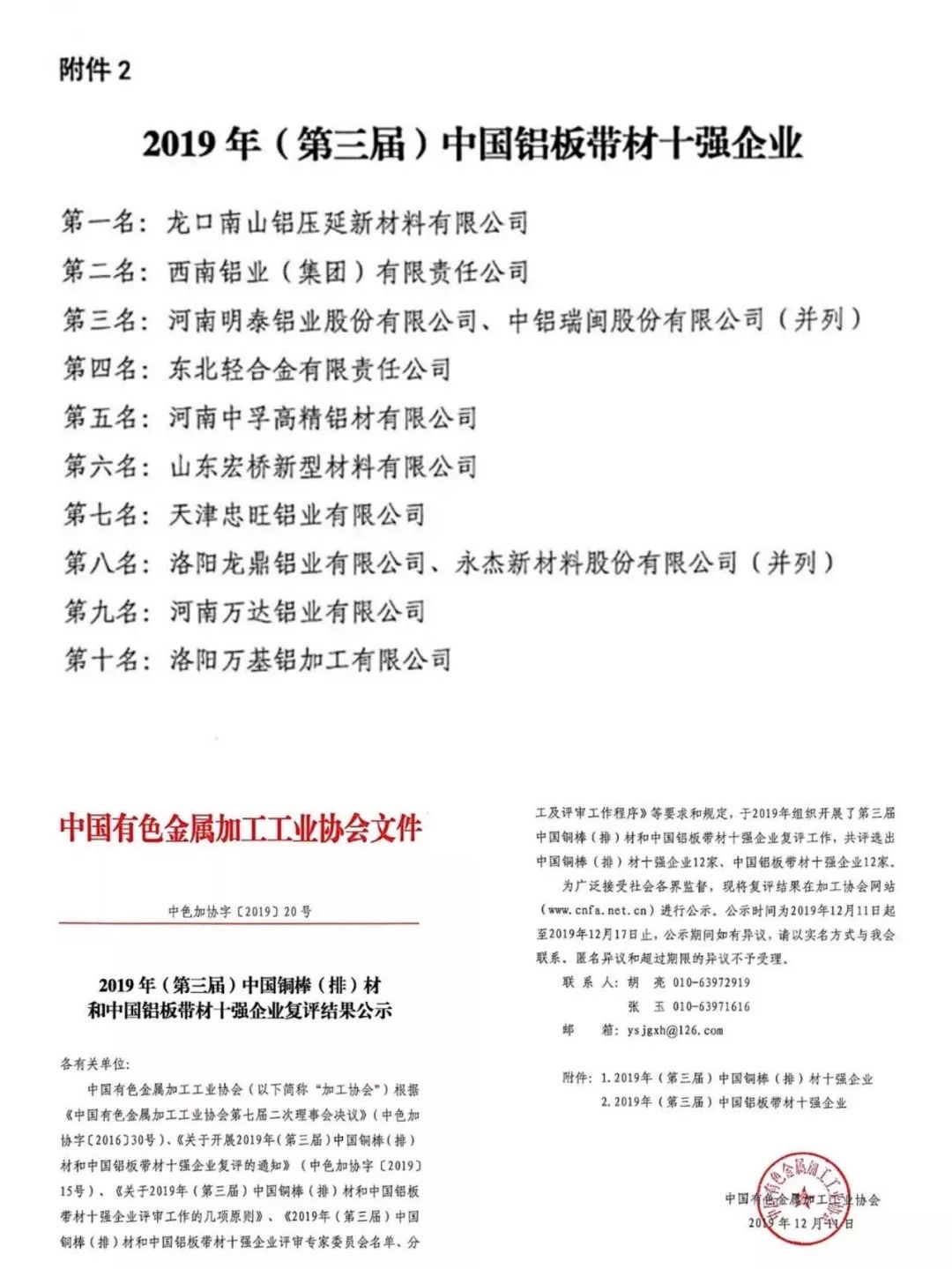 本次中國鋁板帶材十強(qiáng)評選活動由中國有色金屬加工工業(yè)協(xié)會舉辦,在歷時(shí)四個(gè)多月的時(shí)間里,經(jīng)過專家組嚴(yán)格的初審、復(fù)審、公示三個(gè)階段的工作,最終確定了獲獎單位名單。龍口南山鋁壓延新材料有限公司入選十強(qiáng)企業(yè)榜單并位列榜單首位。