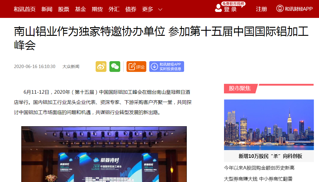 南山鋁業(yè)作為獨(dú)家特邀協(xié)辦單位 參加第十五屆中國(guó)國(guó)際鋁加工峰會(huì)-中國(guó)日?qǐng)?bào)