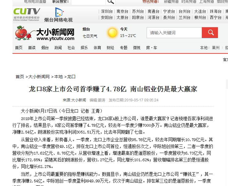大眾網(wǎng)·海報(bào)新聞龍口6月13日訊 (記者 王亮)6月的山東龍口東海,海風(fēng)習(xí)習(xí),清爽怡人。坐落于海邊的南山鋁業(yè)股份有限公司,進(jìn)出車輛繁忙,從這里運(yùn)出的鋁板材,配套波音、空客、中國(guó)C919大飛機(jī),配套中國(guó)高鐵、動(dòng)車,配套寶馬、通用……南山鋁業(yè)的發(fā)展壯大,有力助推龍口成為“中國(guó)交通鋁材名城”、“全國(guó)交通和包裝鋁材及制品產(chǎn)業(yè)知名品牌創(chuàng)建示范區(qū)”。