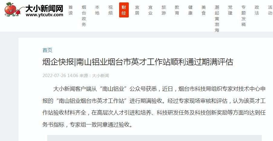大小新聞:南山鋁業(yè)煙臺(tái)市英才工作站順利通過(guò)期滿評(píng)估