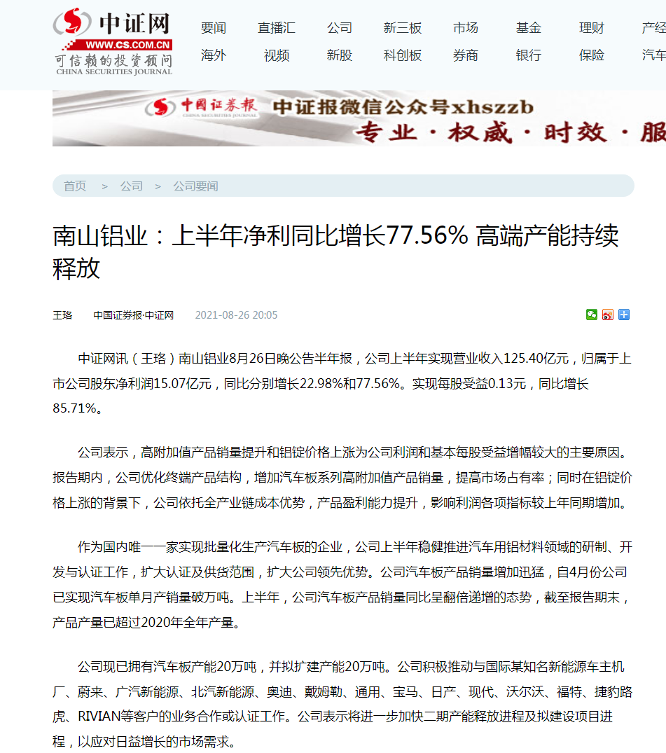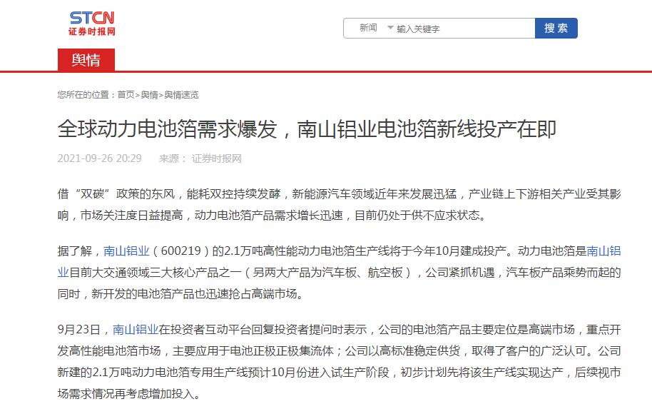 全球動(dòng)力電池箔需求爆發(fā),南山鋁業(yè)電池箔新線(xiàn)投產(chǎn)在即-證券時(shí)報(bào)